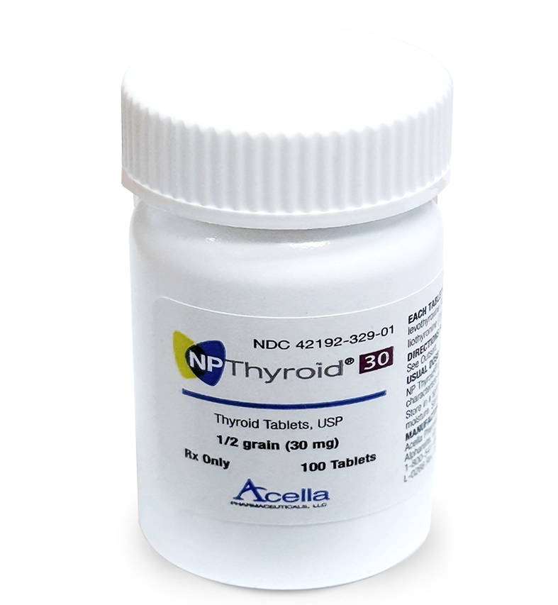NP Thyroid® is a medication derived from porcine thyroid glands. It is a combination of levothyroxine (T4) and liothyronine (T3) that has been desiccated. There are approximately 38 mcg (T4) and 9 mcg (T3) in each 60 mg thyroid extract. There can be some variation in the amount of T4 and T3 in thyroid hormone extracts. Because of the inconsistent amounts of T4 and T3 in the extract, it initiated development of synthetic T4 preparations.